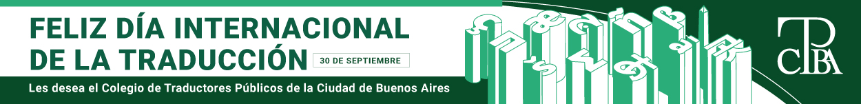 El Colegio inaugura una nueva sede con la Biblioteca Bartolomé Mitre y un espacio de coworking Primer Congreso Latinoamericano de Traducción Jurídica Simposio Hispanoamericano de Nuevas Tecnologías, Localización y Traducción Especializada Duplicación de la cantidad de turnos para tramitar o renovar el certificado de firma digital con token ¡Último número ya disponible! Encontrá un traductor público para cada necesidad Aranceles orientativos Valores de legalizaciones Nombre del traductor público Especialización CIENCIAS DE LA SALUDCIENCIAS SOCIALESCORRECCIÓNECONOMÍA Y FINANZASINGENIERÍA Y ARQUITECTURAINTERPRETACIÓNINTERPRETACIÓN JUDICIALJURÍDICOLOCALIZACIÓNMEDICINAOTROSTÉCNICO CIENTÍFICATRADUCCIÓN AUDIOVISUALTRADUCCIÓN LITERARIA Idioma ALEMÁNÁRABEARMENIOBIELORRUSOBÚLGAROCATALÁNCHECOCHINOCOREANOCROATADANÉSESLOVACOESLOVENOFINLANDÉSFRANCÉSGRIEGOHEBREOHÚNGAROINGLÉSITALIANOJAPONÉSLATÍNLETÓNLITUANONEERLANDÉSNORUEGOPERSA-FARSI-IRANIPOLACOPORTUGUÉSRUMANORUSOSERBIOSUECOTURCOUCRANIANOVIETNAMITA Idioma adicional ALEMÁNÁRABEARMENIOBIELORRUSOBÚLGAROCATALÁNCHECOCHINOCOREANOCROATADANÉSESLOVACOESLOVENOFINLANDÉSFRANCÉSGRIEGOHEBREOHÚNGAROINGLÉSITALIANOJAPONÉSLATÍNLETÓNLITUANONEERLANDÉSNORUEGOPERSA-FARSI-IRANIPOLACOPORTUGUÉSRUMANORUSOSERBIOSUECOTURCOUCRANIANOVIETNAMITA Provincia BUENOS AIRESC.A.B.A.CATAMARCACHACOCHUBUTCÓRDOBACORRIENTESENTRE RIOSFORMOSAGBA GRAN BS. AS.JUJUYLA PAMPALA RIOJAMENDOZAMISIONESNEUQUENRIO NEGROSALTASAN JUANSAN LUISSANTA CRUZSANTA FESANTIAGO DEL ESTEROTIERRA DEL FUEGOTUCUMAN Barrio o Zona 70009 DE JULIOACASSUSOACASUSSOADOLFO GONZALEZ CHAVESADROGUEAGRONOMIAALDO BONZIALEJANDRO KORNALMAGROALMIRANTE BROWNARRECIFESAVELLANEDAAYACUCHOAZULBAHIA BLANCABALCARCEBALVANERABANFIELDBARADEROBARILOCHEBARRACASBARRACAS-BARRANQUERASBARRIO ANTARTIDA ARG.1BECCARBELGRANOBELLA VISTABENAVIDEZBENITO JUAREZBERAZATEGUIBERISSOBERNALBOCABOEDOBOULOGNEBRAGADOBRANDSENBURZACOCABALLITOCALETA OLIVIACAMPANACANNINGCAÑUELASCAPILLA DEL SEÑORCARAPACHAYCARHUECASEROSCASTELARCATAMARCACENTENARIOCHACABUCOCHACARITACHACRAS DE CORIACHASCOMUSCHILECHIVILCOYCIPOLLETTICITY BELLCIUDAD CELINACIUDAD EVITACIUDAD JARDIN DEL PALOMARCIUDAD JARDÍN LOMAS DEL PALOMARCIUDAD MADEROCIUDADELACLAYPOLECOGHLANCOLEGIALESCOLONIA BARONCOMODORO RIVADAVIACONCEPCION DEL URUGUAYCONCORDIACONSTITUCIÓNCÓRDOBACÓRDOBA CAPITALCORONEL SUAREZCORRIENTESCRESPOCRUCESITACURUZÚ CUATIÁDAIREAUXDEL VISODOMINGO FAUSTINO SARMIENTODON BOSCODON TORCUATOEDUARDO CASTEXEL BOLSONEL CALAFATEEL DORADOEL PALOMARESCOBARESQUELEXALTACION DE LA CRUZEZEIZAEZPELETAFLORENCIO VARELAFLORESFLORESTAFLORIDAFORMOSAFRANCISCO ALVAREZFUNESG3A1Z2-QUEBEC-CANADAGAIMANGARÍNGENERAL BELGRANOGENERAL GÜEMESGENERAL LAS HERASGENERAL PACHECOGENERAL PICOGENERAL ROCAGENERAL RODRIGUEZGENERAL SAN MARTINGERLIGLEWGODOY CRUZGONNETGONZALEZ CATANGRAL PIRANGRAL. ROCAGRAL. VALENTIN VIRASOROGRAND BOURGGRAND BOURG-GREGORIO DE LAFERREREGUALEGUAYCHUGUAYMALLENGUERNICAGUTIERREZHAEDOHUDSONHURLINGHAMINGENIERO MASCHWITZISIDRO CASANOVAITUZAINGOJESÚS MARÍAJOSÉ C. PAZJOSE LEON SUAREZJUNINJUNIN DE LOS ANDESLA BOCALA FALDALA LUCILALA PLATALA TABLADALAGO PUELOLANUSLAS HERASLEANDRO N. ALEMLIBERTADLIBERTADOR SAN MARTINLINCOLNLINIERSLLAVALLOLLOMA VERDELOMAS DE ZAMORALOMAS DEL MIRADORLongchampsLOPEZ CAMELOLOS POLVORINESLUIS GUILLONLUJANLUJAN DE CUYOMAIPUMALAGUEÑOMAQUINISTA F. SAVIOMAR DE AJOMAR DEL PLATAMARCOS PAZMARTIN CORONADOMARTINEZMATADEROSMENDOZAMERCEDESMERLOMIRAMARMONSERRATMONTE CASEROSMONTE CASTROMONTE GRANDEMONTSERRATMORENOMORONMUÑIZMUNRONECOCHEANEUQUENNORDELTANUEVA POMPEYANUÑEZOLAVARRIAOLIVOSPABLO NOGUESPABLO PODESTAPALERMOPALOMARPARANAPARQUE AVELLANEDAPARQUE CHACABUCOPARQUE CHASPARQUE LELOIRPARQUE PATRICIOSPASO DEL REYPATERNALPEHUAJOPERGAMINOPICO TRUNCADOPIEDRA DEL AGUILAPILARPINAMARPLATANOSPLOTTIERPONTEVEDRAPOSADASPRESIDENTE DERQUIPUERTO BELGRANOPUERTO MADEROPUERTO MADRYNPUNTA ALTAQUILMESRADA TILLYRAFAEL CALZADARAFAELARAMOS MEJIARANELAGHRAWSONRAWSON-RECOLETAREMEDIOS DE ESCALADARESISTENCIARETIRORINCÓN DE MILBERGRIO GALLEGOSRIO GRANDERÍO TERCEROROSARIOROSARIO DEL TALARSAAVEDRASAENZ PEÑASALADILLOSALTASALTA CAPITALSAN ANDRES DE GILESSAN ANTONIO DE ARECOSAN ANTONIO DE PADUASAN CARLOS DE BARILOCHESAN CRISTÓBALSAN FERNANDOSAN FRANCISCO SOLANOSAN ISIDROSAN JOSESAN JUANSAN JUSTOSAN LUISSAN MARTINSAN MARTIN DE LOS ANDESSAN MARTIN-SAN MARTIN--SAN MIGUELSAN NICOLÁSSAN NICOLÁS DE LOS ARROYOSSAN RAFAELSAN TELMOSANTA LUCIASANTA ROSASANTIAGO DEL ESTEROSANTOS LUGARESTANDILTAPALQUETAPIALESTEMPERLEYTIGRETOAYTORTUGUITASTRELEWTRENQUE LAUQUENTRES ARROYOSTRONCOS DEL TALARTURDERAURDINARRAINUSHUAIAVALENTIN ALSINAVALLE HERMOSOVELEZ SARSFIELDVERSAILLESVERSALLESVICENTE LOPEZVICTORIAVIEDMAVILLA ADELINAVILLA BALLESTERVILLA BOSCHVILLA CRESPOVILLA CURA BROCHEROVILLA DE MAYOVILLA DEL PARQUEVILLA DEVOTOVILLA DOMINICOVILLA ELISAVILLA ELISA-VILLA GENERAL BELGRANOVILLA GENERAL MITREVILLA GRAL MITREVILLA LA ANGOSTURAVILLA LUGANOVILLA LUROVILLA LUZURIAGAVILLA MADEROVILLA MARTELLIVILLA MERCEDESVILLA ORTÚZARVILLA PUEYRREDONVILLA REALVILLA RIACHUELOVILLA SAN LORENZOVILLA SANTA RITAVILLA SARMIENTOVILLA SOLDATIVILLA TESEIVILLA UDAONDOVILLA URQUIZAWILDEYERBA BUENAZAPALAZARATE Buscar Te invitamos a conocer: Aranceles orientativos Legalizaciones Peritos traductores Comisiones Beneficios Revista CTPCBA Biblioteca Librería Fondo Editorial Teatro en el CTPCBA Coro del CTPCBA Estudiantes