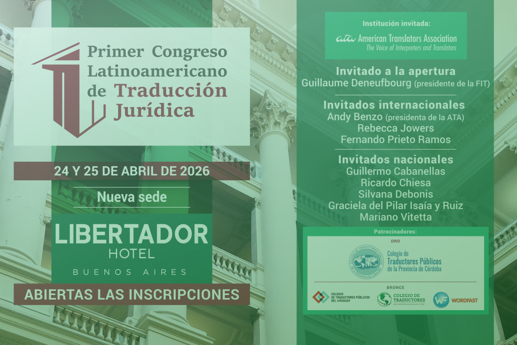 Nueva sede Ya se encuentra abierta la inscripción en los talleres Reunión con autoridades de la CACPIC Reunión con autoridades de la Cámara de Comercio e Industria Franco-Argentina El CTPCBA renovó su convenio con la Facultad de Derecho de la UBA Encontrá un traductor público para cada necesidad Aranceles orientativos Valores de legalizaciones Nombre del traductor público Especialización CIENCIAS DE LA SALUDCIENCIAS SOCIALESCORRECCIÓNECONOMÍA Y FINANZASINGENIERÍA Y ARQUITECTURAINTERPRETACIÓNINTERPRETACIÓN JUDICIALJURÍDICOLOCALIZACIÓNMEDICINAOTROSTÉCNICO CIENTÍFICATRADUCCIÓN AUDIOVISUALTRADUCCIÓN LITERARIA Idioma ALEMÁNÁRABEARMENIOBIELORRUSOBÚLGAROCATALÁNCHECOCHINOCOREANOCROATADANÉSESLOVACOESLOVENOFINLANDÉSFRANCÉSGRIEGOHEBREOHÚNGAROINGLÉSITALIANOJAPONÉSLATÍNLETÓNLITUANONEERLANDÉSNORUEGOPERSA-FARSI-IRANIPOLACOPORTUGUÉSRUMANORUSOSERBIOSUECOTURCOUCRANIANOVIETNAMITA Idioma adicional ALEMÁNÁRABEARMENIOBIELORRUSOBÚLGAROCATALÁNCHECOCHINOCOREANOCROATADANÉSESLOVACOESLOVENOFINLANDÉSFRANCÉSGRIEGOHEBREOHÚNGAROINGLÉSITALIANOJAPONÉSLATÍNLETÓNLITUANONEERLANDÉSNORUEGOPERSA-FARSI-IRANIPOLACOPORTUGUÉSRUMANORUSOSERBIOSUECOTURCOUCRANIANOVIETNAMITA Provincia BUENOS AIRESC.A.B.A.CATAMARCACHACOCHUBUTCÓRDOBACORRIENTESENTRE RIOSFORMOSAGBA GRAN BS. AS.JUJUYLA PAMPALA RIOJAMENDOZAMISIONESNEUQUENRIO NEGROSALTASAN JUANSAN LUISSANTA CRUZSANTA FESANTIAGO DEL ESTEROTIERRA DEL FUEGOTUCUMAN Barrio o Zona 70009 DE JULIOACASSUSOACASUSSOADOLFO GONZALEZ CHAVESADROGUEAGRONOMIAALDO BONZIALEJANDRO KORNALMAGROALMIRANTE BROWNARRECIFESAVELLANEDAAYACUCHOAZULBAHIA BLANCABALCARCEBALVANERABANFIELDBARADEROBARILOCHEBARRACASBARRACAS-BARRANQUERASBARRIO ANTARTIDA ARG.1BECCARBELGRANOBELLA VISTABENAVIDEZBENITO JUAREZBERAZATEGUIBERISSOBERNALBOCABOEDOBOULOGNEBRAGADOBRANDSENBURZACOCABALLITOCALETA OLIVIACAMPANACANNINGCAÑUELASCAPILLA DEL SEÑORCARAPACHAYCARHUECASEROSCASTELARCATAMARCACENTENARIOCHACABUCOCHACARITACHACRAS DE CORIACHASCOMUSCHILECHIVILCOYCIPOLLETTICITY BELLCIUDAD CELINACIUDAD EVITACIUDAD JARDIN DEL PALOMARCIUDAD JARDÍN LOMAS DEL PALOMARCIUDAD MADEROCIUDADELACLAYPOLECOGHLANCOLEGIALESCOLONIA BARONCOMODORO RIVADAVIACONCEPCION DEL URUGUAYCONCORDIACONSTITUCIÓNCÓRDOBACÓRDOBA CAPITALCORONEL SUAREZCORRIENTESCRESPOCRUCESITACURUZÚ CUATIÁDAIREAUXDEL VISODOMINGO FAUSTINO SARMIENTODON BOSCODON TORCUATOEDUARDO CASTEXEL BOLSONEL CALAFATEEL DORADOEL PALOMARESCOBARESQUELEXALTACION DE LA CRUZEZEIZAEZPELETAFLORENCIO VARELAFLORESFLORESTAFLORIDAFORMOSAFRANCISCO ALVAREZFUNESG3A1Z2-QUEBEC-CANADAGAIMANGARÍNGENERAL BELGRANOGENERAL GÜEMESGENERAL LAS HERASGENERAL PACHECOGENERAL PICOGENERAL ROCAGENERAL RODRIGUEZGENERAL SAN MARTINGERLIGLEWGODOY CRUZGONNETGONZALEZ CATANGRAL PIRANGRAL. ROCAGRAL. VALENTIN VIRASOROGRAND BOURGGRAND BOURG-GREGORIO DE LAFERREREGUALEGUAYCHUGUAYMALLENGUERNICAGUTIERREZHAEDOHUDSONHURLINGHAMINGENIERO MASCHWITZISIDRO CASANOVAITUZAINGOJESÚS MARÍAJOSÉ C. PAZJOSE LEON SUAREZJUNINJUNIN DE LOS ANDESLA BOCALA FALDALA LUCILALA PLATALA TABLADALAGO PUELOLANUSLAS HERASLEANDRO N. ALEMLIBERTADLIBERTADOR SAN MARTINLINCOLNLINIERSLLAVALLOLLOMA VERDELOMAS DE ZAMORALOMAS DEL MIRADORLongchampsLOPEZ CAMELOLOS POLVORINESLUIS GUILLONLUJANLUJAN DE CUYOMAIPUMALAGUEÑOMAQUINISTA F. SAVIOMAR DE AJOMAR DEL PLATAMARCOS PAZMARTIN CORONADOMARTINEZMATADEROSMENDOZAMERCEDESMERLOMIRAMARMONSERRATMONTE CASEROSMONTE CASTROMONTE GRANDEMONTSERRATMORENOMORONMUÑIZMUNRONECOCHEANEUQUENNORDELTANUEVA POMPEYANUÑEZOLAVARRIAOLIVOSPABLO NOGUESPABLO PODESTAPALERMOPALOMARPARANAPARQUE AVELLANEDAPARQUE CHACABUCOPARQUE CHASPARQUE LELOIRPARQUE PATRICIOSPASO DEL REYPATERNALPEHUAJOPERGAMINOPICO TRUNCADOPIEDRA DEL AGUILAPILARPINAMARPLATANOSPLOTTIERPONTEVEDRAPOSADASPRESIDENTE DERQUIPUERTO BELGRANOPUERTO MADEROPUERTO MADRYNPUNTA ALTAQUILMESRADA TILLYRAFAEL CALZADARAFAELARAMOS MEJIARANELAGHRAWSONRAWSON-RECOLETAREMEDIOS DE ESCALADARESISTENCIARETIRORINCÓN DE MILBERGRIO GALLEGOSRIO GRANDERÍO TERCEROROSARIOROSARIO DEL TALARSAAVEDRASAENZ PEÑASALADILLOSALTASALTA CAPITALSAN ANDRES DE GILESSAN ANTONIO DE ARECOSAN ANTONIO DE PADUASAN CARLOS DE BARILOCHESAN CRISTÓBALSAN FERNANDOSAN FRANCISCO SOLANOSAN ISIDROSAN JOSESAN JUANSAN JUSTOSAN LUISSAN MARTINSAN MARTIN DE LOS ANDESSAN MARTIN-SAN MARTIN--SAN MIGUELSAN NICOLÁSSAN NICOLÁS DE LOS ARROYOSSAN RAFAELSAN TELMOSANTA LUCIASANTA ROSASANTIAGO DEL ESTEROSANTOS LUGARESTANDILTAPALQUETAPIALESTEMPERLEYTIGRETOAYTORTUGUITASTRELEWTRENQUE LAUQUENTRES ARROYOSTRONCOS DEL TALARTURDERAURDINARRAINUSHUAIAVALENTIN ALSINAVALLE HERMOSOVELEZ SARSFIELDVERSAILLESVERSALLESVICENTE LOPEZVICTORIAVIEDMAVILLA ADELINAVILLA BALLESTERVILLA BOSCHVILLA CRESPOVILLA CURA BROCHEROVILLA DE MAYOVILLA DEL PARQUEVILLA DEVOTOVILLA DOMINICOVILLA ELISAVILLA ELISA-VILLA GENERAL BELGRANOVILLA GENERAL MITREVILLA GRAL MITREVILLA LA ANGOSTURAVILLA LUGANOVILLA LUROVILLA LUZURIAGAVILLA MADEROVILLA MARTELLIVILLA MERCEDESVILLA ORTÚZARVILLA PUEYRREDONVILLA REALVILLA RIACHUELOVILLA SAN LORENZOVILLA SANTA RITAVILLA SARMIENTOVILLA SOLDATIVILLA TESEIVILLA UDAONDOVILLA URQUIZAWILDEYERBA BUENAZAPALAZARATE Buscar Te invitamos a conocer: Aranceles orientativos Legalizaciones Peritos traductores Comisiones Beneficios Revista CTPCBA Biblioteca Librería Fondo Editorial Teatro en el CTPCBA Coro del CTPCBA Estudiantes