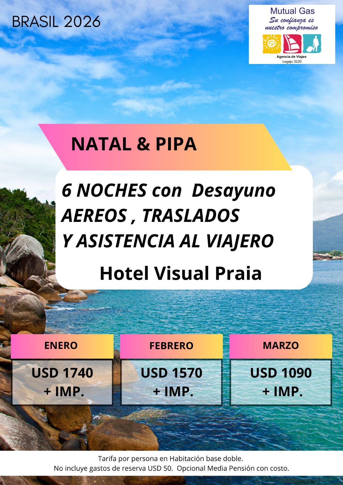 La entidad Mutual Gas ofrece a nuestros matriculados el servicio de turismo que presta a sus asociados, incluye ofertas para el turismo local e internacional, salidas grupales, entradas a parques recreativos y cruceros.